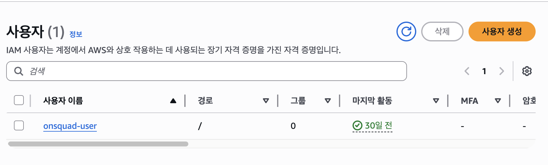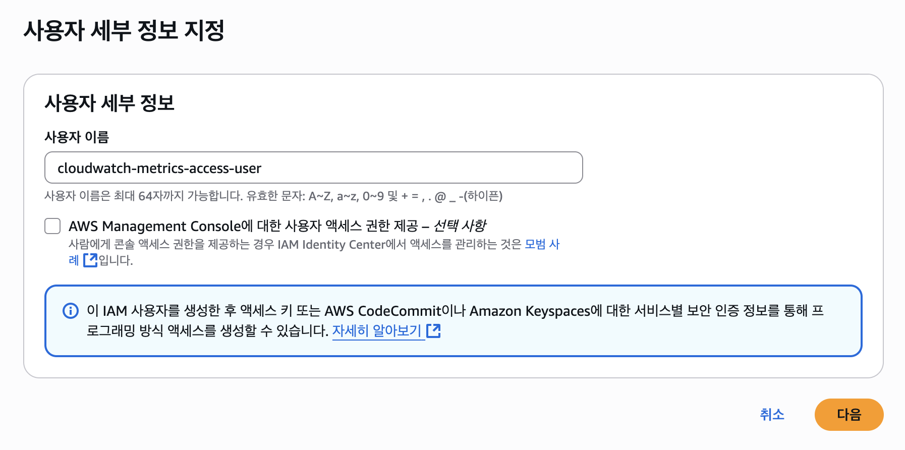 AWS Console > IAM > 액세스 관리 > 사용자 > 사용자 생성