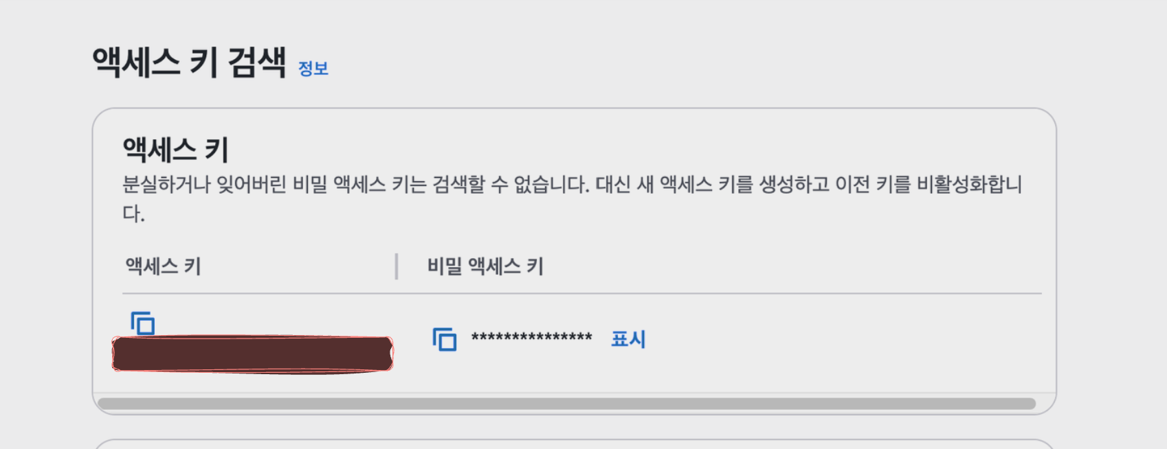 는 보관 잘하셔야 합니다. 비밀 액세스 키는 잃어버리면 다시 발급받아야해서 귀찮아집니다.